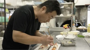 レストランからホテル向けの朝食などの惣菜を手がける方向転換をし、平行してイカの活き造りの瞬間冷凍の試作を始める
